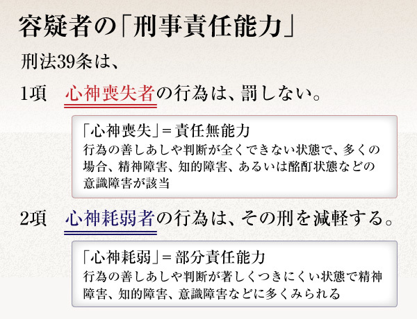 警報では責任無能力のものは罰しないという考えをとっています。「責任なければ刑罰なし」の原則とも呼ばれます。